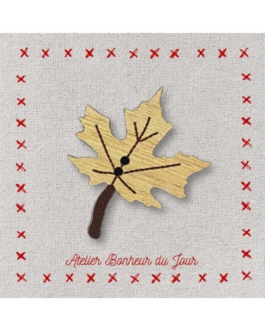 Descriptif : Bouton décoratif en bois, collection automne "feuille d'érable" couleur bois. Pour embellir, personnaliser et décorer vos ouvrages.