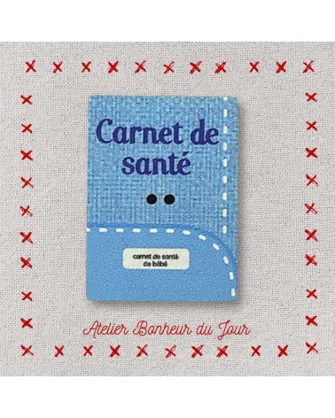 Descriptif : Bouton décoratif en bois, collection bébé "carnet de santé" couleur bleu. Pour embellir, personnaliser et décorer vos ouvrages.
