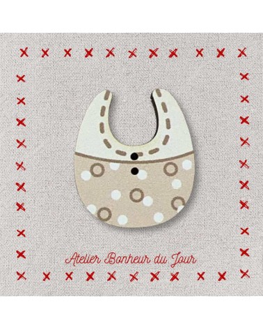 Descriptif : Bouton décoratif en bois, collection bébé "bavoir" couleur lin. Pour embellir, personnaliser et décorer vos ouvrages.