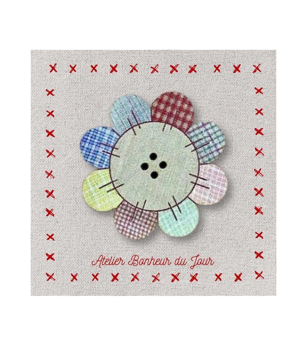 Descriptif : Bouton décoratif en bois, collection mercerie "fleur patch" tissus japonais. Pour embellir, personnaliser et décorer vos ouvrages.