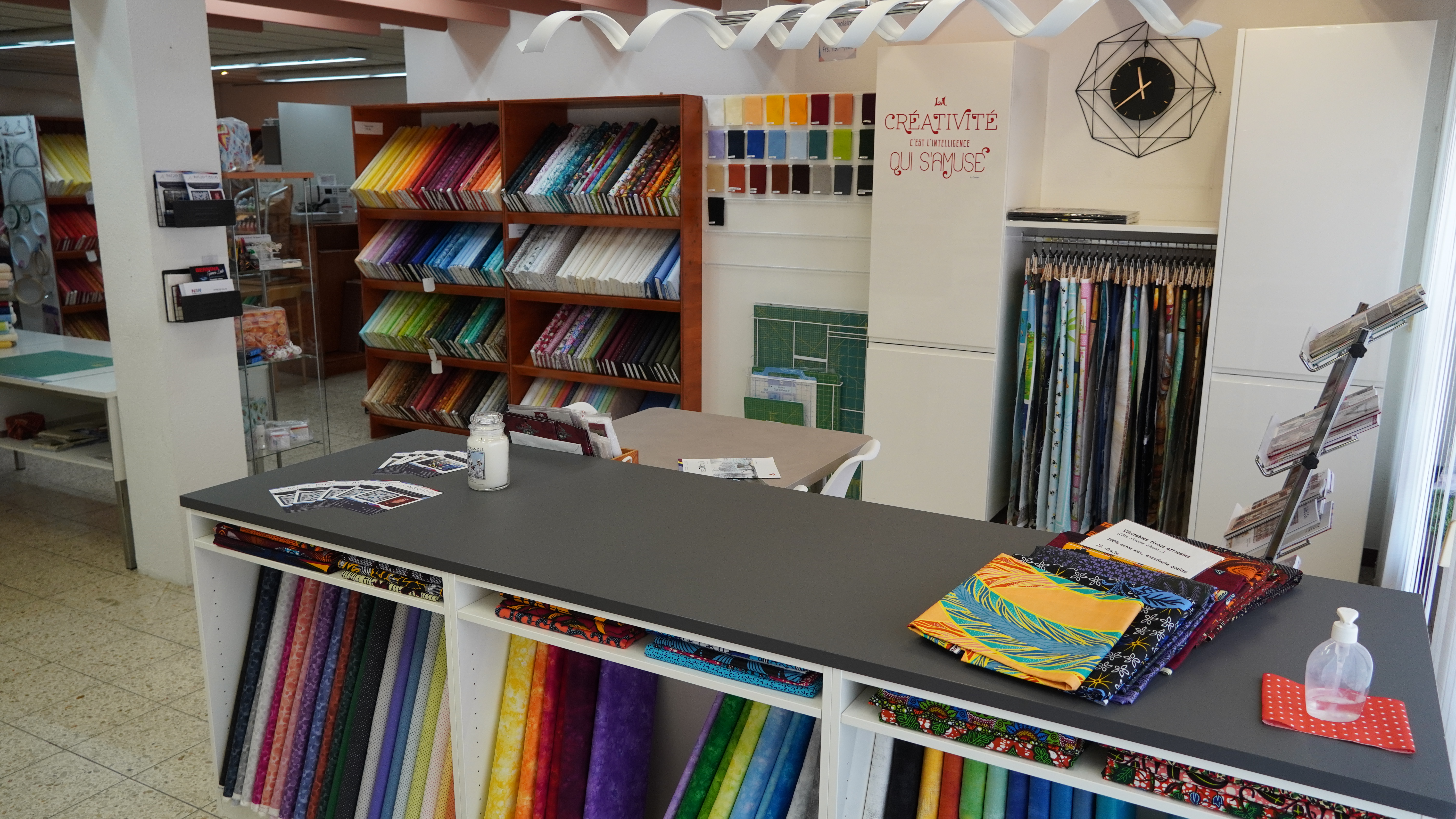 Des outils de coupe et de mesure spécifiques, beaucoup d'accessoires de couture et de quilting ainsi que les entoilages et ouatines, en différentes épaisseurs et compositions, indispensables pour donner du corps et de la structure aux quilts et autres ouvrages sont également en vente en boutique.