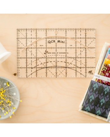 Descriptif : La mini règle Quick Curve Ruler s'utilise avec tous les patrons QCR mini de Sew Kind of Wonderful. Elle sert à découper les formes courbes et à équerrer les blocs. Elle est fabriquée en acrylique de haute qualité et comporte une encoche incurvée pour la découpe au cutter rotatif. Un cutter rotatif de 45 mm est recommandé. La règle est livrée avec un modèle inclus : "Mini Runner".