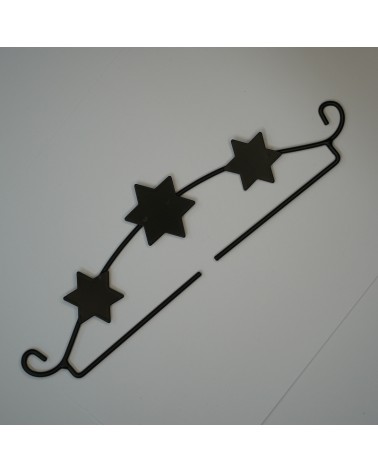 Descriptif : Suspension pour quilt ou ouvrage décoratif. En métal noir avec 3 étoiles. Longueur 21 cm.