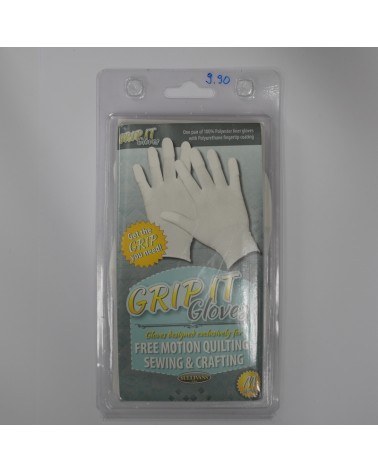 Descriptif : Gants Grip It, taille M, idéal pour le quilting en mouvement libre. 100 % polyester hautement respirants avec un revêtement souple en polyuréthane au bout des doigts. Lavables à l'eau froide. Séchage à plat. Ne sécher au sèche-linge, ni repasser.