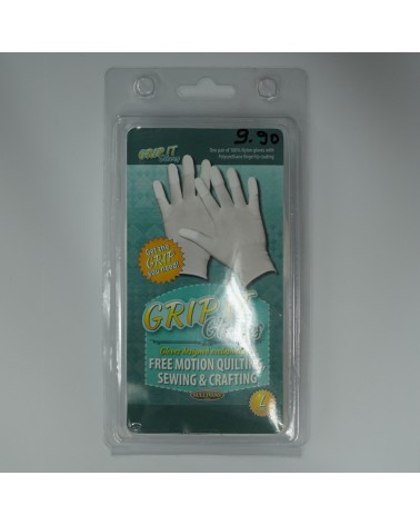 Descriptif : Gants Grip It, taille L, idéal pour le quilting en mouvement libre. 100 % polyester hautement respirants avec un revêtement souple en polyuréthane au bout des doigts. Lavables à l'eau froide. Séchage à plat. Ne sécher au sèche-linge, ni repasser.