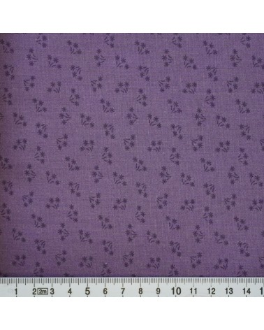 Descriptif : Tissu coton avec petites fleurs violettes sur fond parme