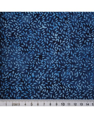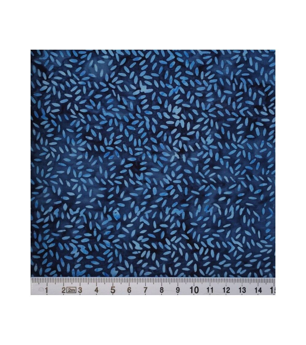 Descriptif : Tissu batik avec traitillés en forme de taches bleus sur fond bleu marine