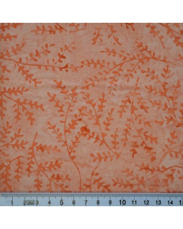 Descriptif : Tissu batik avec branches coloris orange rose sur fond rose