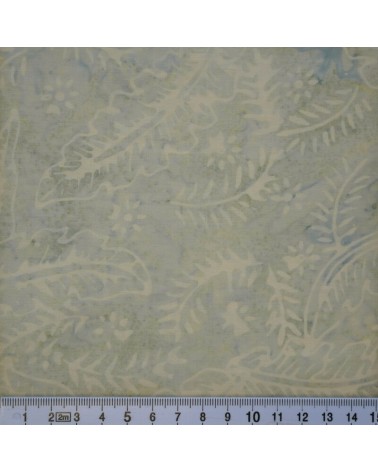 Descriptif : Tissu batik avec feuilles gris très pâle sur fond gris