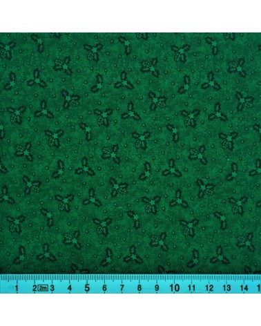Descriptif : Tissu coton avec petites feuilles de houx vertes sur fond vert, ton sur ton