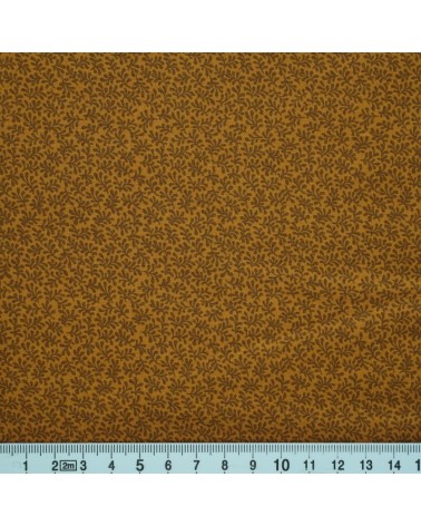 Descriptif : Tissu coton avec petites branches brunes sur fond ocre