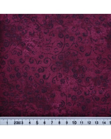 Descriptif : Tissu coton avec arabesques bordeaux sur fond bordeaux