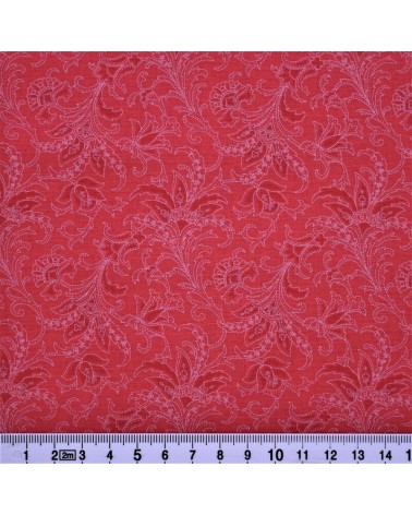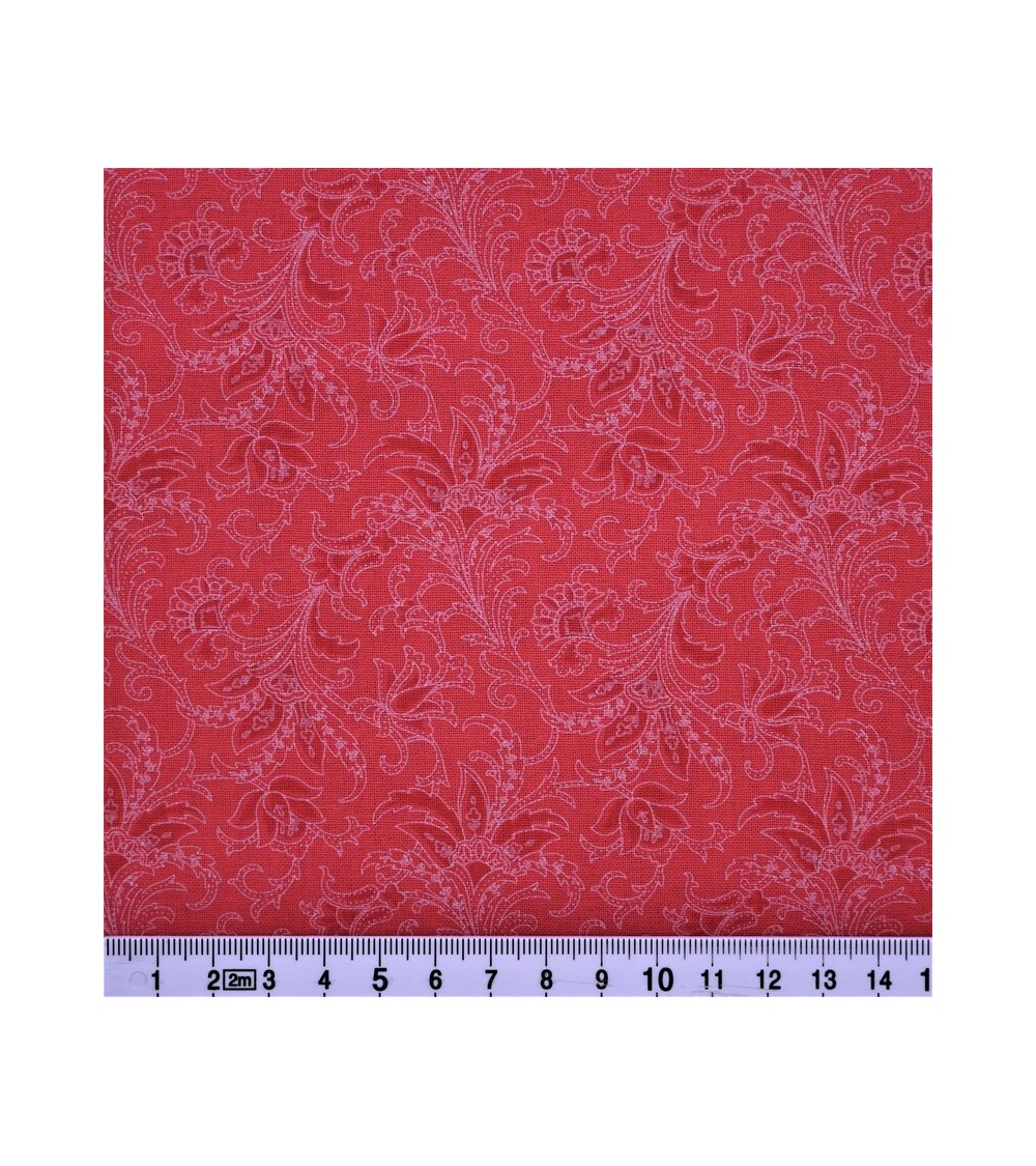 Descriptif : Tissu coton avec arabesques et fleurs rose