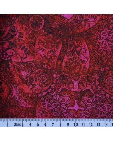 Descriptif : Tissu coton mandala rouge rose sur fond noir