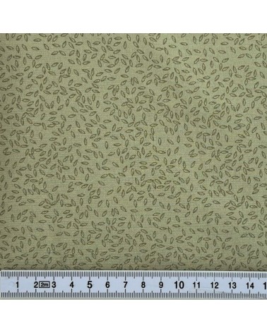 Descriptif : Tissu coton avec petites feuilles vertes sur fond vert, ton sur ton