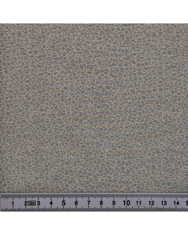 Descriptif : Tissu coton avec tourbillons blancs sur fond gris perle
