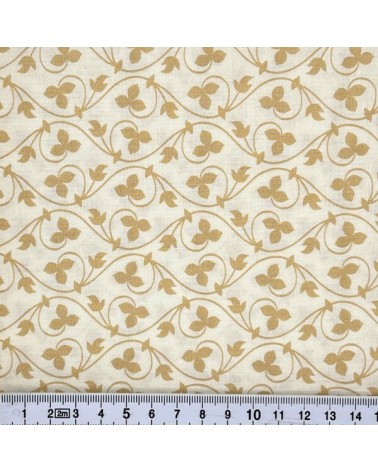 Descriptif : Tissu coton avec feuilles en guirlande coloris beige sur fond blanc