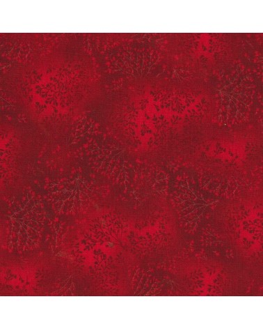 Descriptif : Tissu coton avec petites branches sur fond rouge rubis