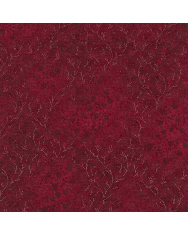 Descriptif : Tissu coton avec petites fleurs sur fond rouge cherry