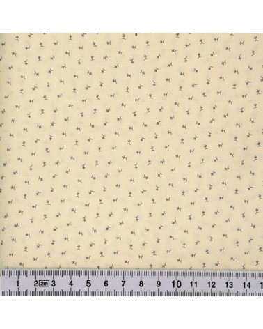 Descriptif : Tissu coton avec minuscules fleurs noires sur fond blanc nuage