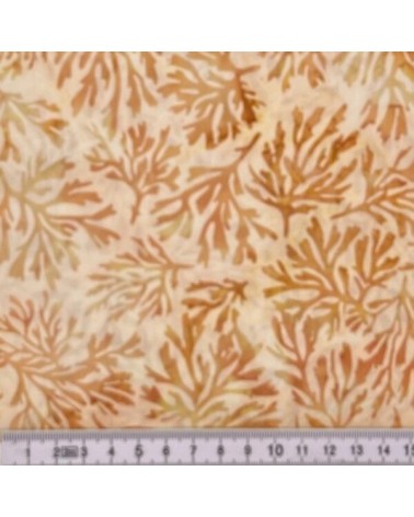Descriptif : Tissu batik avec feuilles "corail" beiges sur fond beige clair