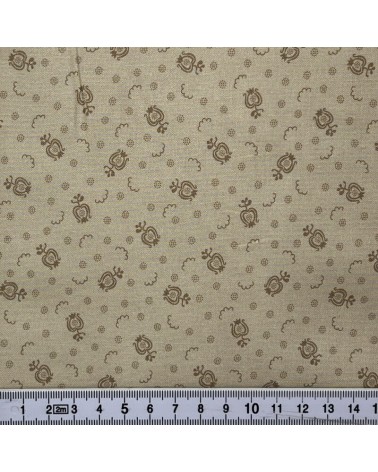 Descriptif : Tissu coton avec petits dessins bruns sur fond beige