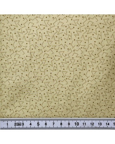 Descriptif : Tissu coton avec lignes et carrés brun sur fond beige peau de daim