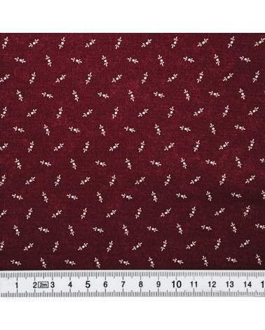 Descriptif : Tissu coton avec petits dessins géométriques blancs sur fond nuancé rouge érable