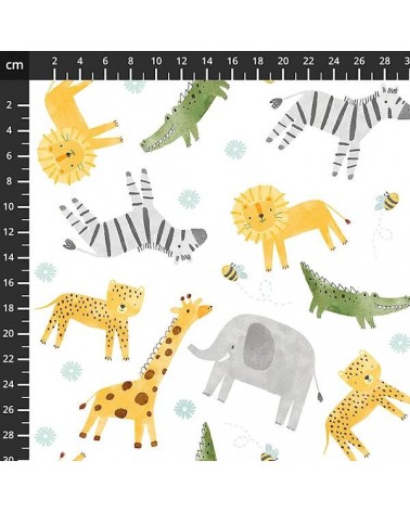 Descriptif : Tissu coton avec animaux de la jungle sur fond blanc