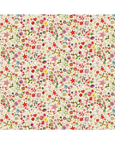 Descriptif : Tissu coton avec trésors de Noël sur fond crème