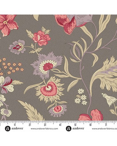 Descriptif : Tissu coton fleurs sauvages multicolores sur fond taupe