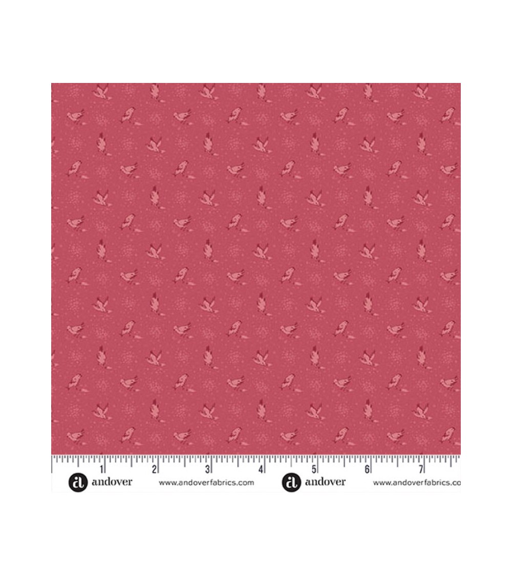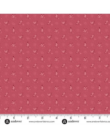 Descriptif : Tissu coton avec minuscules oiseaux rose sur fond rose framboisé
