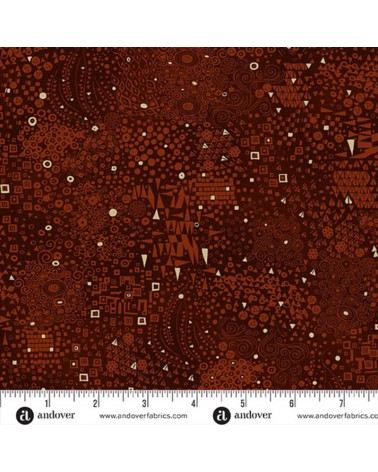 Descriptif : Tissu coton avec dessins géométriques bruns et dorés sur fond brun