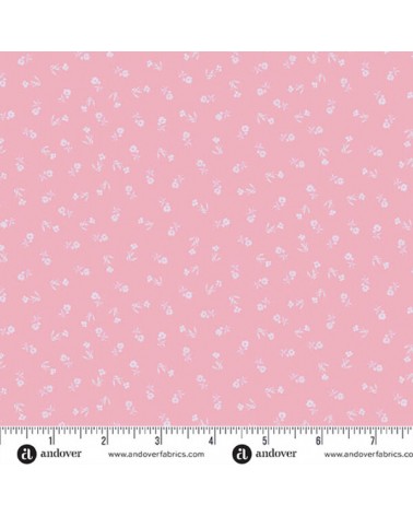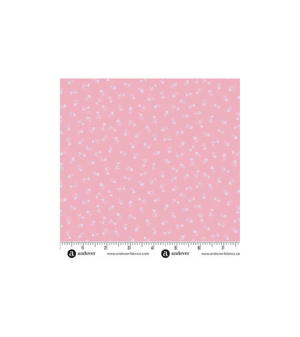 Descriptif : Tissu coton avec petites fleurs blanches sur fond rose
