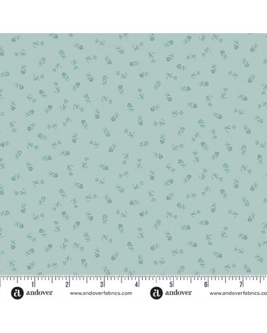 Descriptif : Tissu coton avec petites fleurs bleues sur fond bleu clair