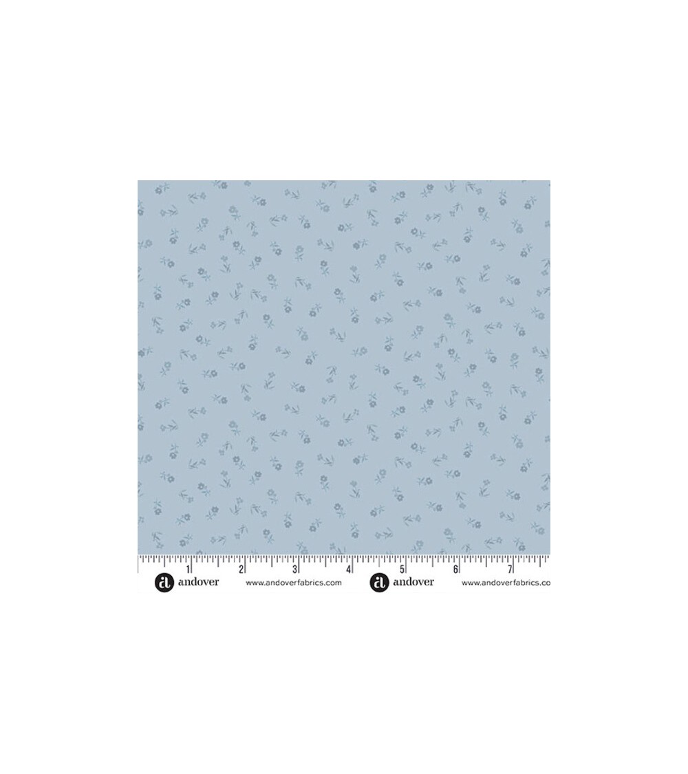 Descriptif : Tissu coton avec petites fleurs bleues sur fond bleu