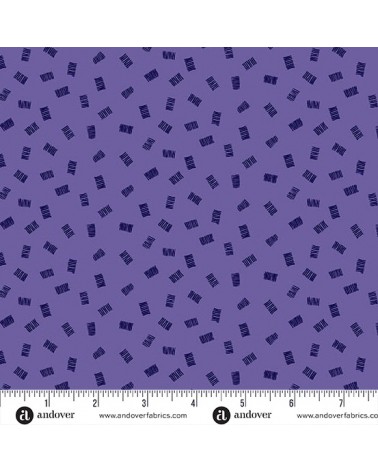 Descriptif : Tissu coton avec petites lignes en rectangle noires sur fond violet