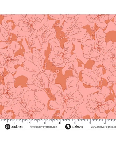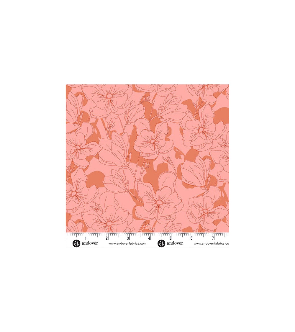 Tissu coton avec fleurs rose corail