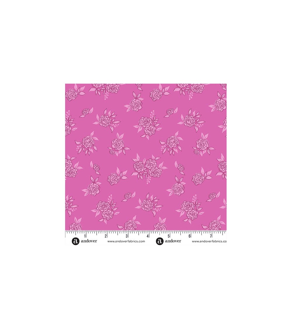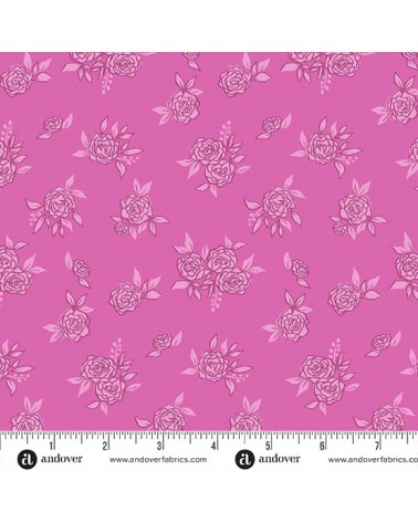Descriptif : Tissu coton avec roses rose sur fond rose magenta
