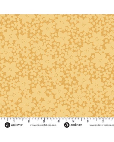 Descriptif : Tissu coton avec fleurs jaunes sur fond jaune safran