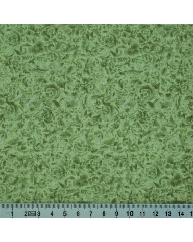 Descriptif : Tissu coton avec petites feuilles vertes sur fond vert, ton sur ton