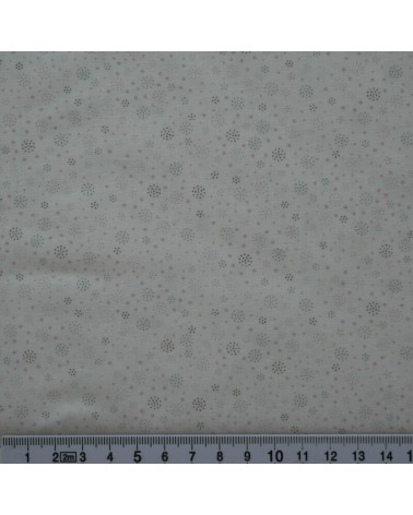 Descriptif : Tissu coton avec pointillés roses et gris formant des cercles, sur fond blanc cassé