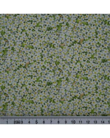 Descriptif : Tissu coton champ de petites fleurs blanches avec coeur jaune