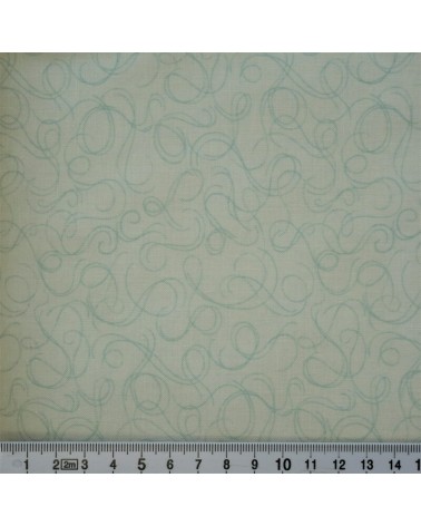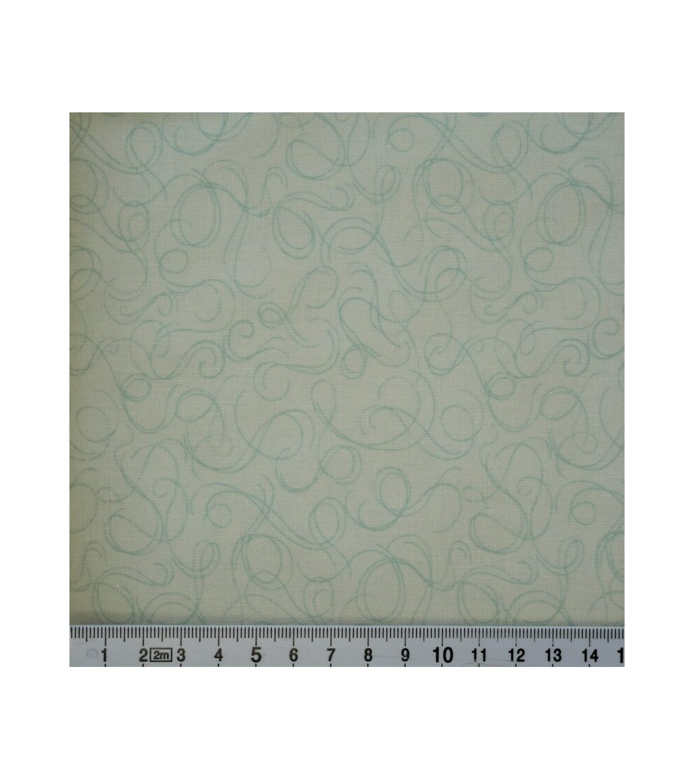 Descriptif : Tissu coton avec arabesques bleues sur fond blanc cassé